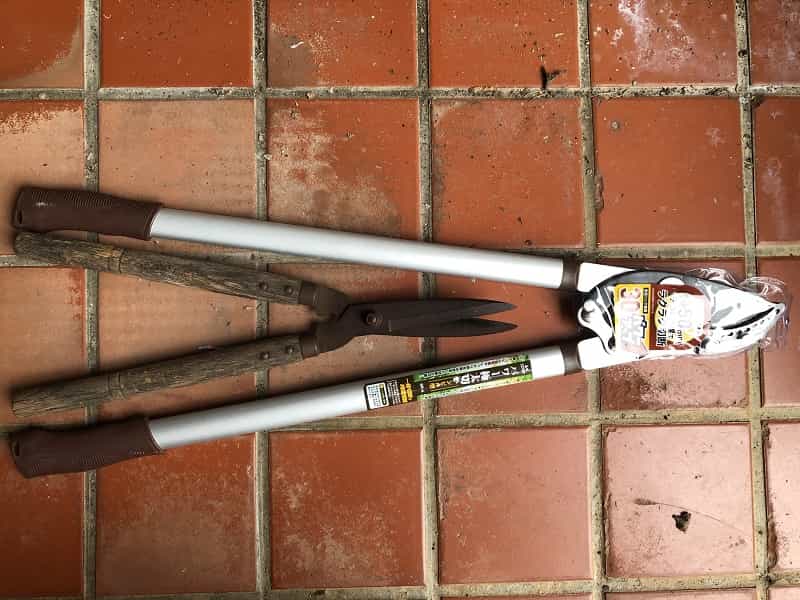 右画像は数十年前から家にある枝切ばさみとの大きさの比較です