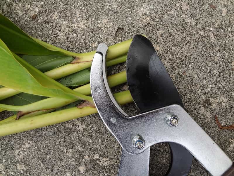 右画像 私のハサミは細い枝の場合刃から逃げてしまうようです 最後まで切れていません(^_^;)
