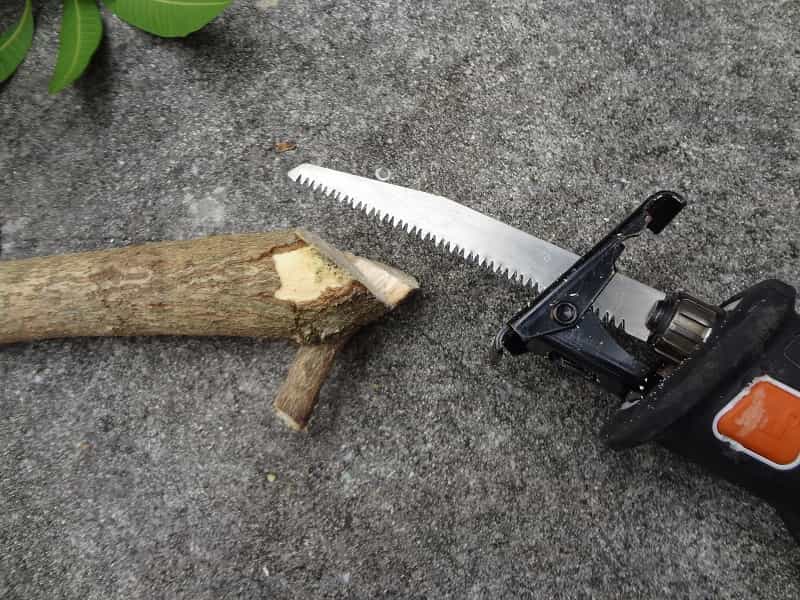 かなり太い枝(約6cm)でもレシプロソーでなら数秒で切れます