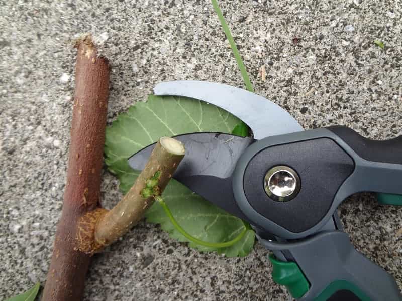 前回紹介した剪定ばさみで右の細い枝(約1.5cm)を切りました きれいな切り口です